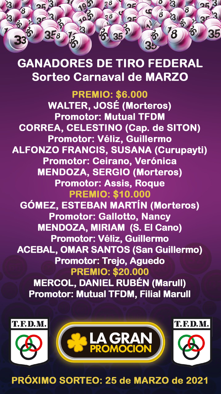 1º SORTEO CARNAVAL de MARZO de LA GRAN PROMOCIÓN CON TFDM