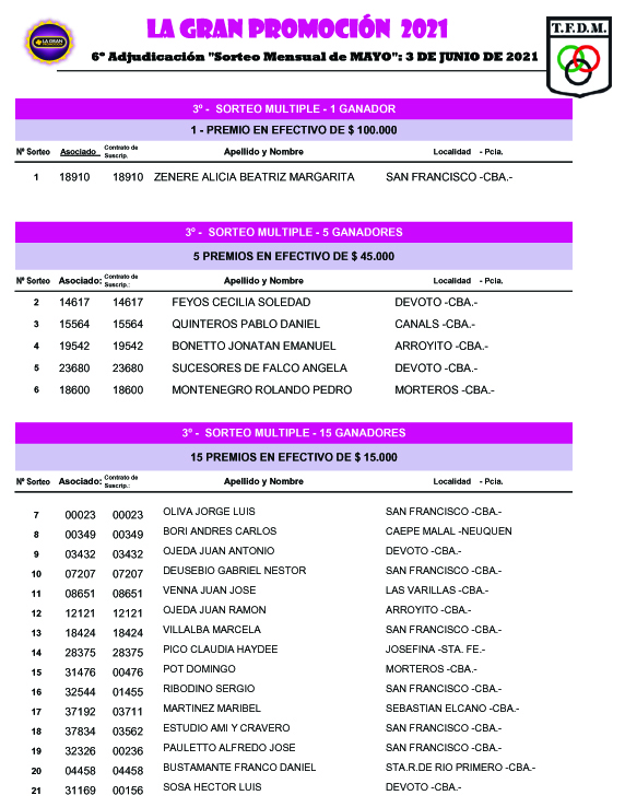 GANADORES SORTEO MENSUAL DE MAYO1 GRAL copia Deja un comentario / Por Lorena Gastaldi / 4 junio, 2021