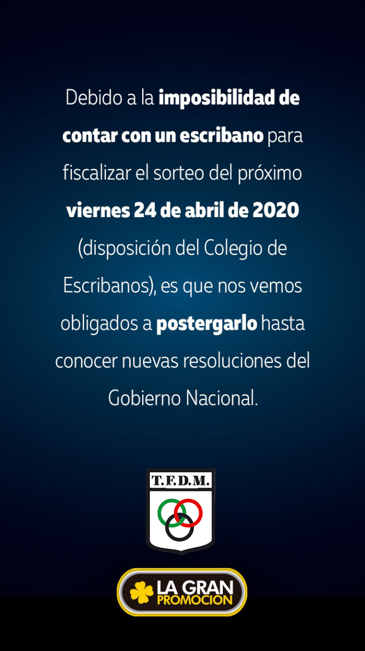 Se suspende el Primer sorteo mensual de La Gran Promoción con TFDM