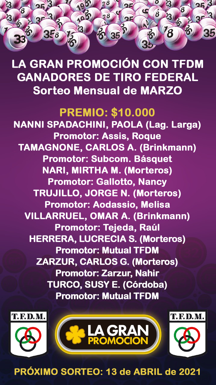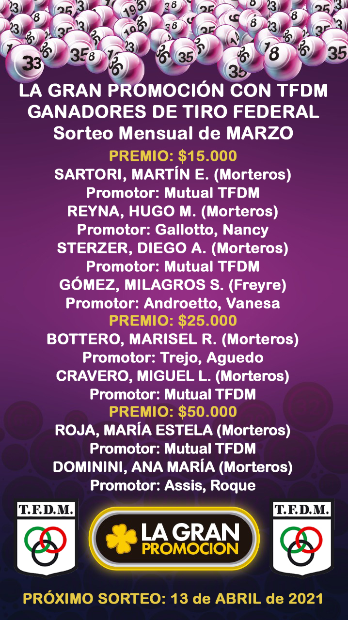 LA GRAN PROMOCIÓN CON TFDM Y NUESTROS FELICES GANADORES!!! FELICITACIONES!!!! y te mostramos también el listado general… Próximo Sorteo Quincenazo, el 13 de ABRIL de 2021.
