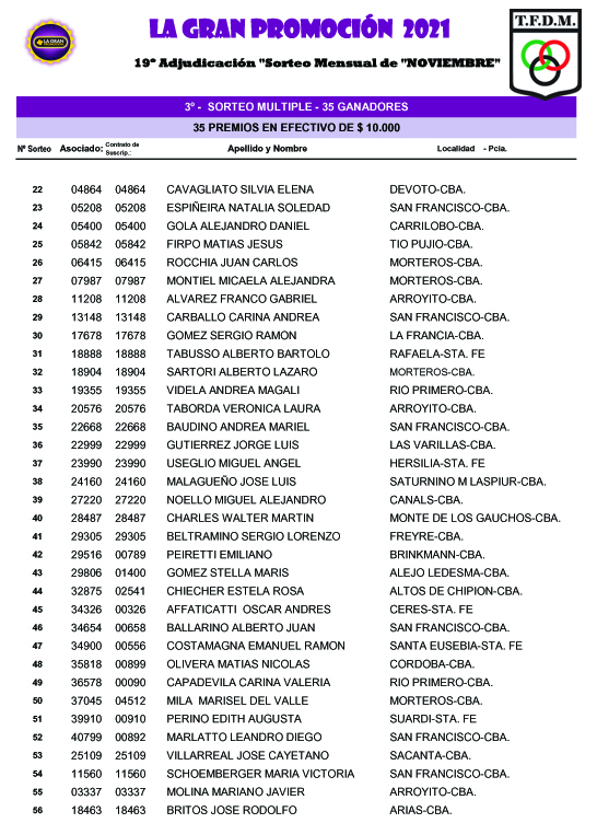 GANADORES SORTEO MENSUAL DE NOVIEMBRE 3 TFDM